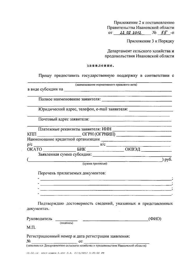 Постановление Правительства Ивановской области от 22.02.2012 N 55-п "О внесении изменений в некоторые постановления Правительства Ивановской области"