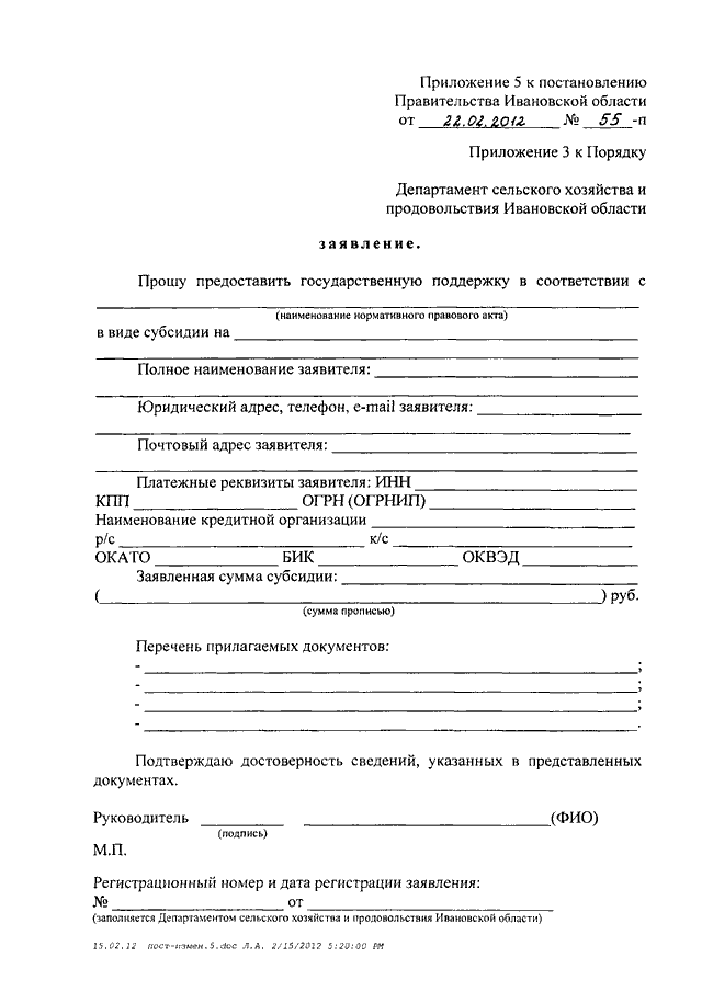 Постановление Правительства Ивановской области от 22.02.2012 N 55-п "О внесении изменений в некоторые постановления Правительства Ивановской области"