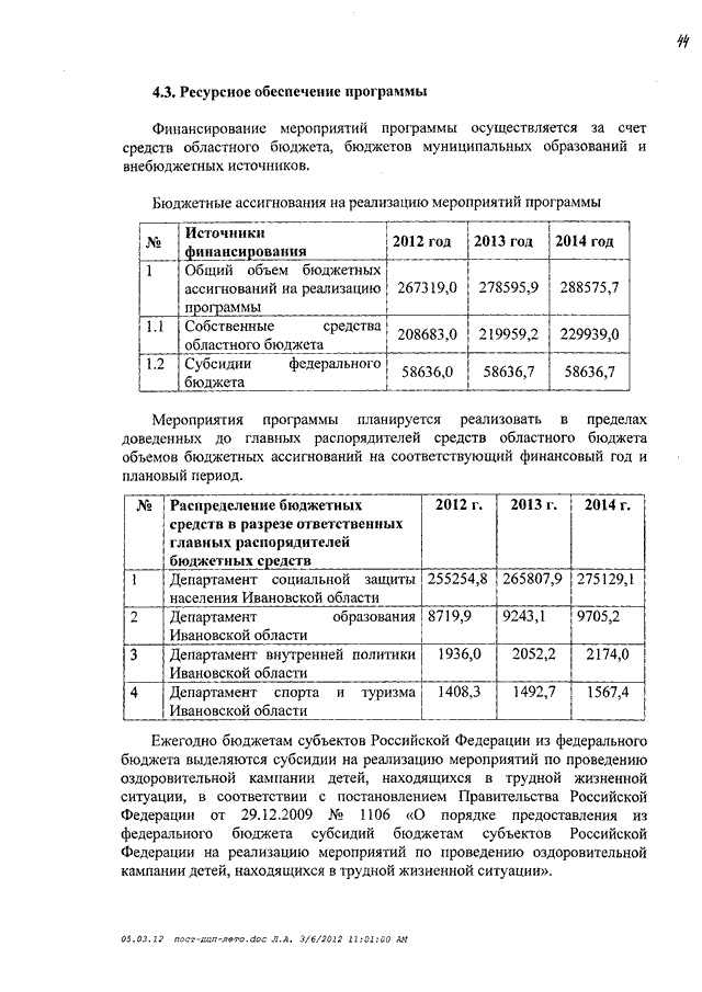 Постановление Правительства Ивановской области от 01.03.2012 N 62-п "Об утверждении долгосрочной целевой программы Ивановской области "Развитие системы отдыха и оздоровления детей в Ивановской области" на 2012 - 2014 годы"