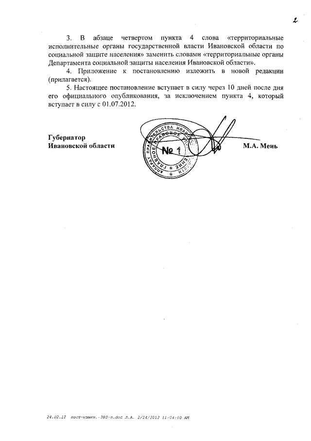 Постановление Правительства Ивановской области от 07.03.2012 N 65-п "О внесении изменений в постановление Правительства Ивановской области от 31.12.2009 N 380-п "Об утверждении порядка назначения и выплаты денежных выплат на питание беременным женщинам и кормящим матерям и перечня предоставляемых для их назначения документов"