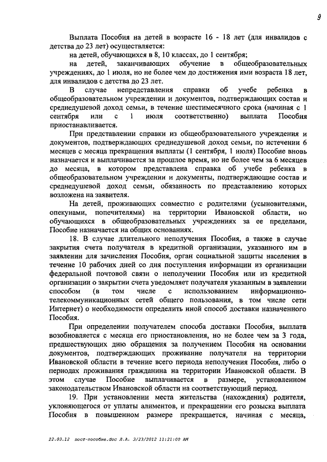 Постановление Правительства Ивановской области от 27.03.2012 N 101-п "Об утверждении Правил обращения за ежемесячным пособием на ребенка, его назначения, выплаты и организации доставки в Ивановской области и Порядка учета и исчисления величины среднедушевого дохода семьи, дающего право на получение ежемесячного пособия на ребенка"