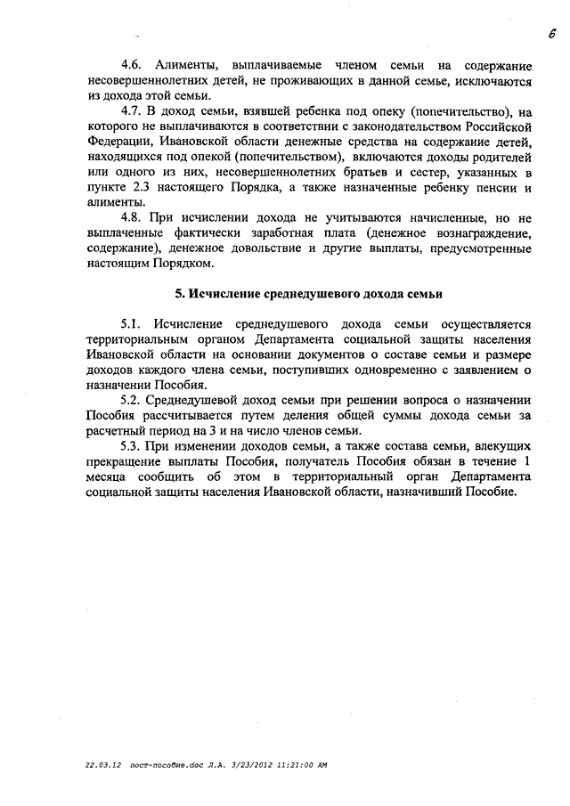 Постановление Правительства Ивановской области от 27.03.2012 N 101-п "Об утверждении Правил обращения за ежемесячным пособием на ребенка, его назначения, выплаты и организации доставки в Ивановской области и Порядка учета и исчисления величины среднедушевого дохода семьи, дающего право на получение ежемесячного пособия на ребенка"