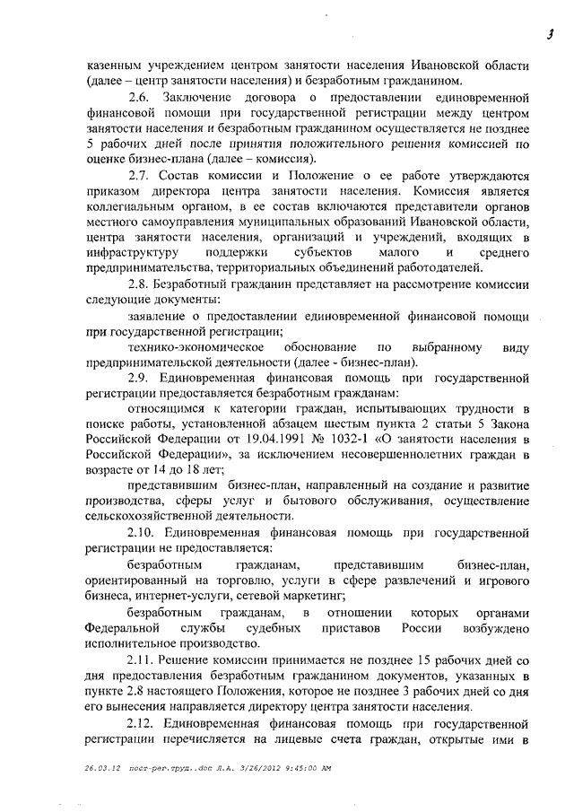 Постановление Правительства Ивановской области от 27.03.2012 N 95-п "Об утверждении Положения о порядке, условиях предоставления и размере единовременной финансовой помощи при государственной регистрации в качестве юридического лица, индивидуального предпринимателя либо крестьянского (фермерского) хозяйства гражданам, признанным в установленном порядке безработными, и гражданам, признанным в установленном порядке безработными и прошедшим профессиональную подготовку, переподготовку и повышение квалификации по направлению органов службы занятости, а также единовременной финансовой помощи на подготовку документов для соответствующей государственной регистрации"