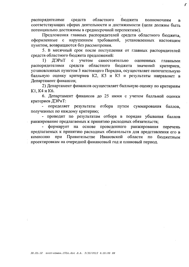 Постановление Правительства Ивановской области от 11.04.2012 N 117-п "О Порядке конкурсного распределения принимаемых расходных обязательств Ивановской области и внесении изменений в постановление Правительства Ивановской области от 26.05.2009 N 150-п "О Порядке составления проекта областного бюджета на очередной финансовый год и плановый период"