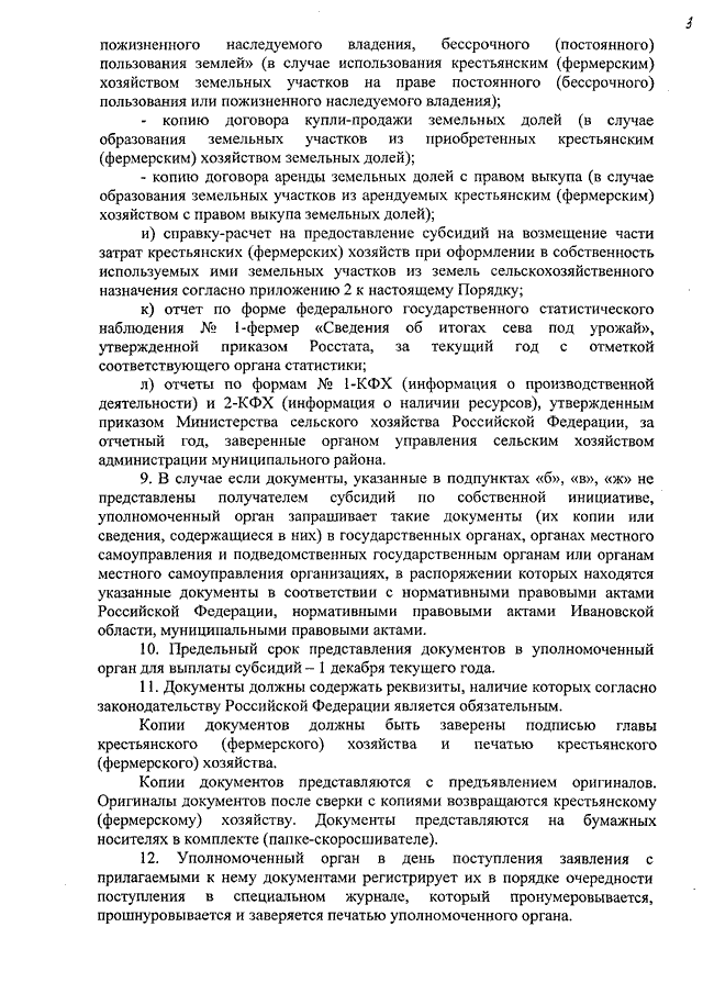 Постановление Правительства Ивановской области от 15.05.2012 N 138-п "Об утверждении Порядка предоставления субсидий на возмещение части затрат крестьянских (фермерских) хозяйств, включая индивидуальных предпринимателей, при оформлении в собственность используемых ими земельных участков из земель сельскохозяйственного назначения, одним из источников финансового обеспечения которых является субсидия из федерального бюджета"