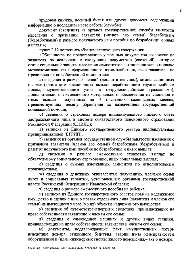 Постановление Правительства Ивановской области от 23.05.2012 N 162-п "О внесении изменений в постановление Правительства Ивановской области от 28.09.2011 N 337-п "Об утверждении Порядка назначения, выплаты и определения размера государственной социальной помощи, оказываемой за счет средств областного бюджета, заключения, изменения и расторжения социального контракта, перечня и форм документов, подтверждающих право на ее получение"