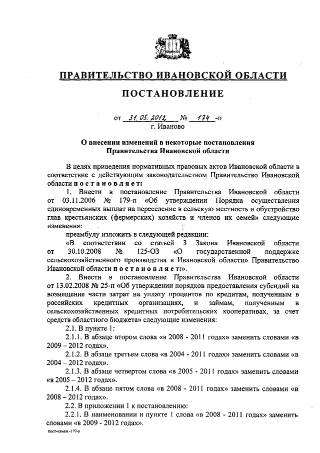Постановление Правительства Ивановской области от 31.05.2012 N 174-п "О внесении изменений в некоторые постановления Правительства Ивановской области" (вместе с "Порядком предоставления субсидий на компенсацию части затрат по страхованию урожая сельскохозяйственных культур, урожая многолетних насаждений и посадок многолетних насаждений источником финансового обеспечения которых является субсидия из федерального бюджета")