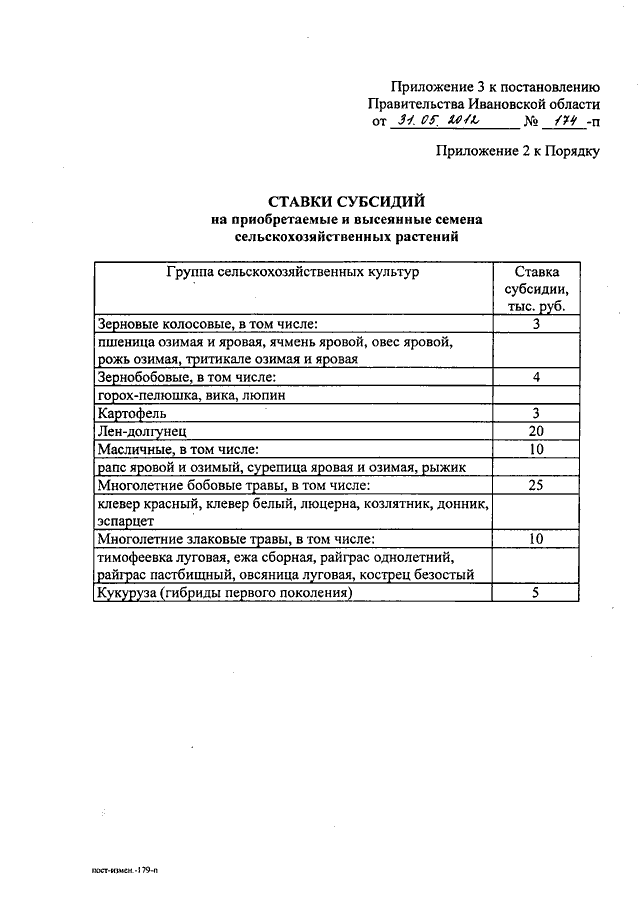 Постановление Правительства Ивановской области от 31.05.2012 N 174-п "О внесении изменений в некоторые постановления Правительства Ивановской области" (вместе с "Порядком предоставления субсидий на компенсацию части затрат по страхованию урожая сельскохозяйственных культур, урожая многолетних насаждений и посадок многолетних насаждений источником финансового обеспечения которых является субсидия из федерального бюджета")