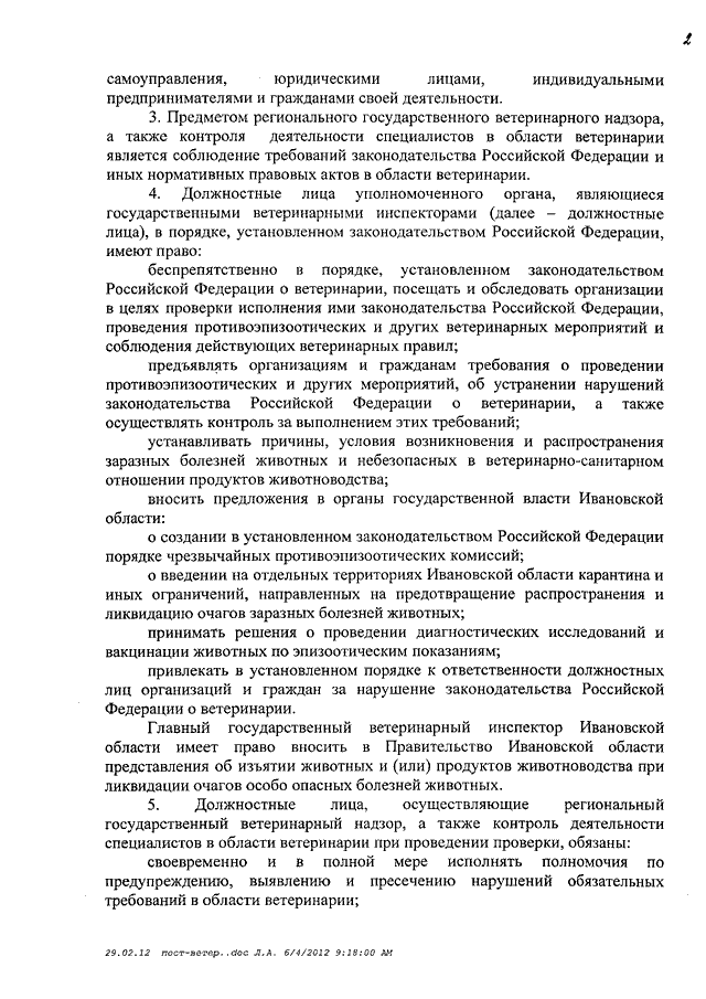 Постановление Правительства Ивановской области от 08.06.2012 N 192-п "Об утверждении Порядка организации и осуществления регионального государственного ветеринарного надзора, а также контроля деятельности специалистов в области ветеринарии"