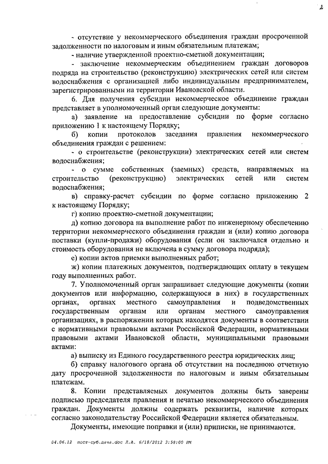 Постановление Правительства Ивановской области от 08.06.2012 N 195-п "Об утверждении Порядка предоставления субсидий на возмещение части затрат на инженерное обеспечение территорий садоводческих, огороднических и дачных некоммерческих объединений граждан"