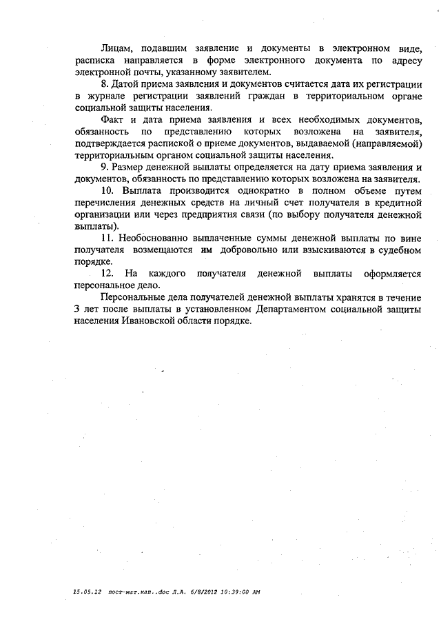Постановление Правительства Ивановской области от 20.06.2012 N 197-п "Об утверждении Порядка назначения и выплаты регионального материнского (семейного) капитала в Ивановской области, перечня документов, подтверждающих право на его получение, и требований к ним"