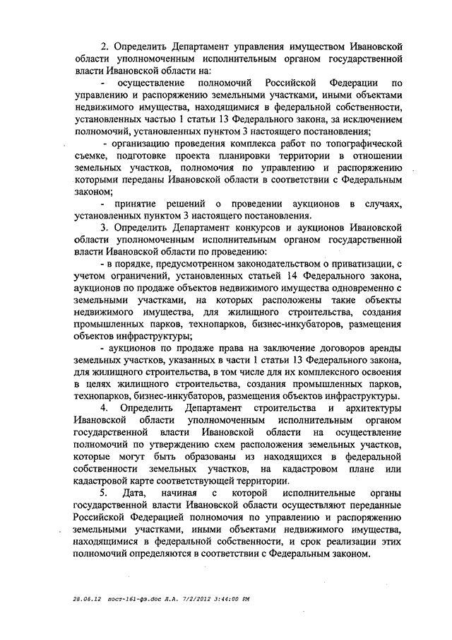 Постановление Правительства Ивановской области от 04.07.2012 N 225-п "О мерах по реализации Федерального закона от 24.07.2008 N 161-ФЗ "О содействии развитию жилищного строительства"