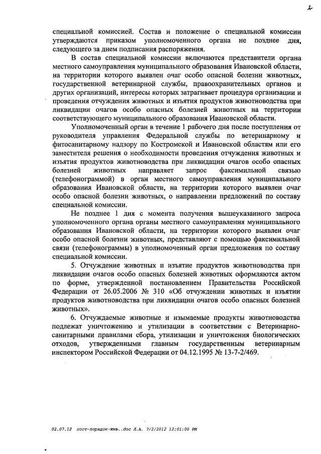 Постановление Правительства Ивановской области от 04.07.2012 N 228-п "Об утверждении Порядка организации и проведения отчуждения животных и изъятия продуктов животноводства на территории Ивановской области при ликвидации очагов особо опасных болезней животных"
