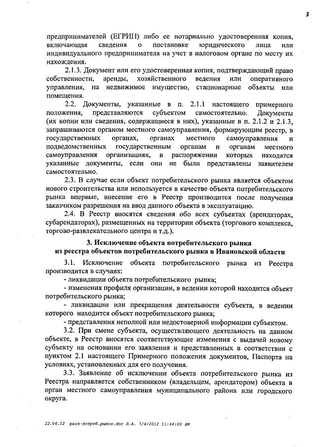 Распоряжение Правительства Ивановской области от 06.07.2012 N 182-рп "Об утверждении примерного положения о порядке формирования и ведения реестра объектов потребительского рынка в Ивановской области"