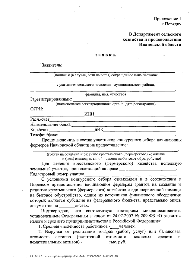 Постановление Правительства Ивановской области от 08.06.2012 N 194-п "Об утверждении Порядка предоставления начинающим фермерам грантов на создание и развитие крестьянского (фермерского) хозяйства и единовременной помощи на бытовое обустройство, одним из источников финансового обеспечения которых является субсидия из федерального бюджета"