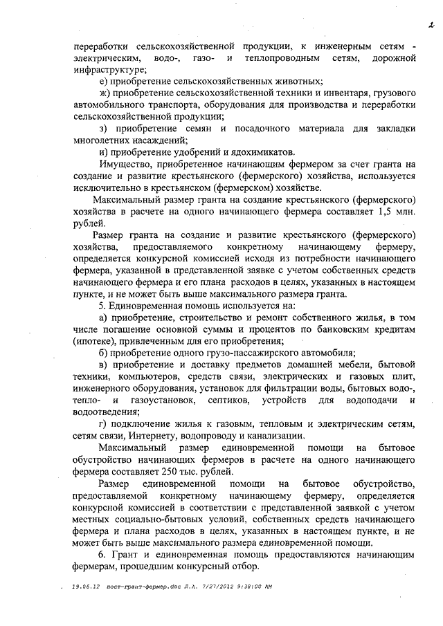Постановление Правительства Ивановской области от 08.06.2012 N 194-п "Об утверждении Порядка предоставления начинающим фермерам грантов на создание и развитие крестьянского (фермерского) хозяйства и единовременной помощи на бытовое обустройство, одним из источников финансового обеспечения которых является субсидия из федерального бюджета"