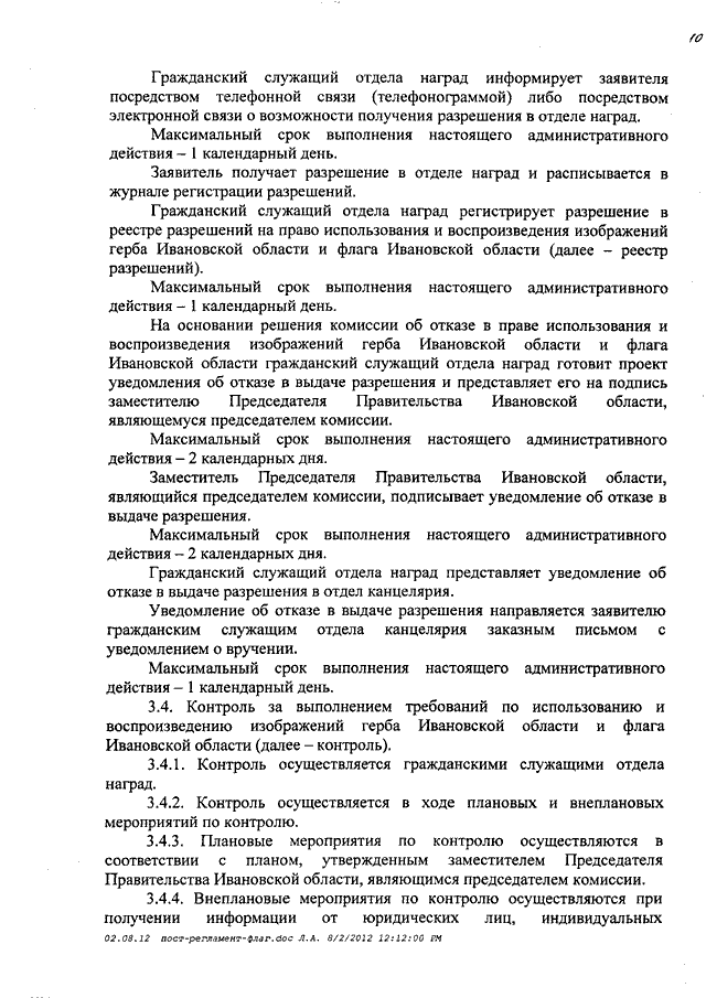 Постановление Правительства Ивановской области от 09.08.2012 N 296-п "Об утверждении административного регламента предоставления Правительством Ивановской области государственной услуги "Выдача разрешений на право использования и воспроизведения изображений герба Ивановской области и флага Ивановской области юридическим лицам и индивидуальным предпринимателям"