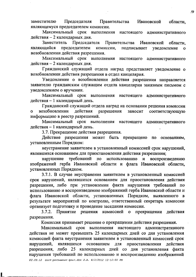 Постановление Правительства Ивановской области от 09.08.2012 N 296-п "Об утверждении административного регламента предоставления Правительством Ивановской области государственной услуги "Выдача разрешений на право использования и воспроизведения изображений герба Ивановской области и флага Ивановской области юридическим лицам и индивидуальным предпринимателям"