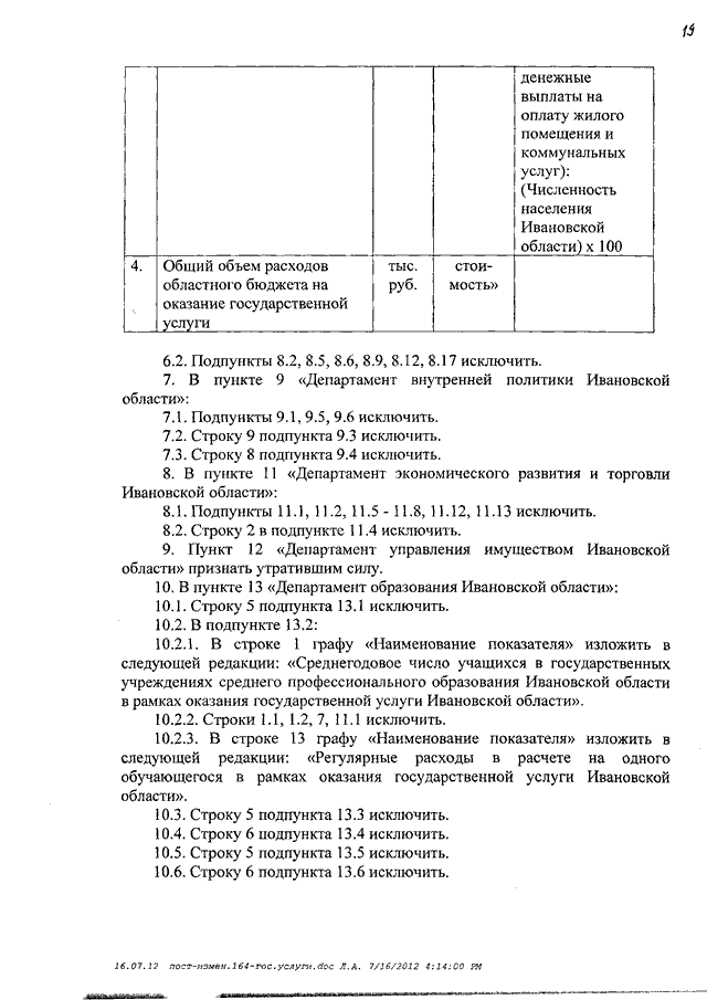 Постановление Правительства Ивановской области от 04.09.2012 N 336-п "О внесении изменений в постановление Правительства Ивановской области от 26.06.2008 N 164-п "Об утверждении перечня показателей, характеризующих оказание (выполнение) государственных услуг (работ) в Ивановской области"