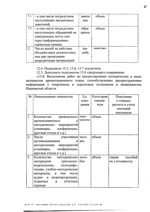 Постановление Правительства Ивановской области от 04.09.2012 N 336-п "О внесении изменений в постановление Правительства Ивановской области от 26.06.2008 N 164-п "Об утверждении перечня показателей, характеризующих оказание (выполнение) государственных услуг (работ) в Ивановской области"