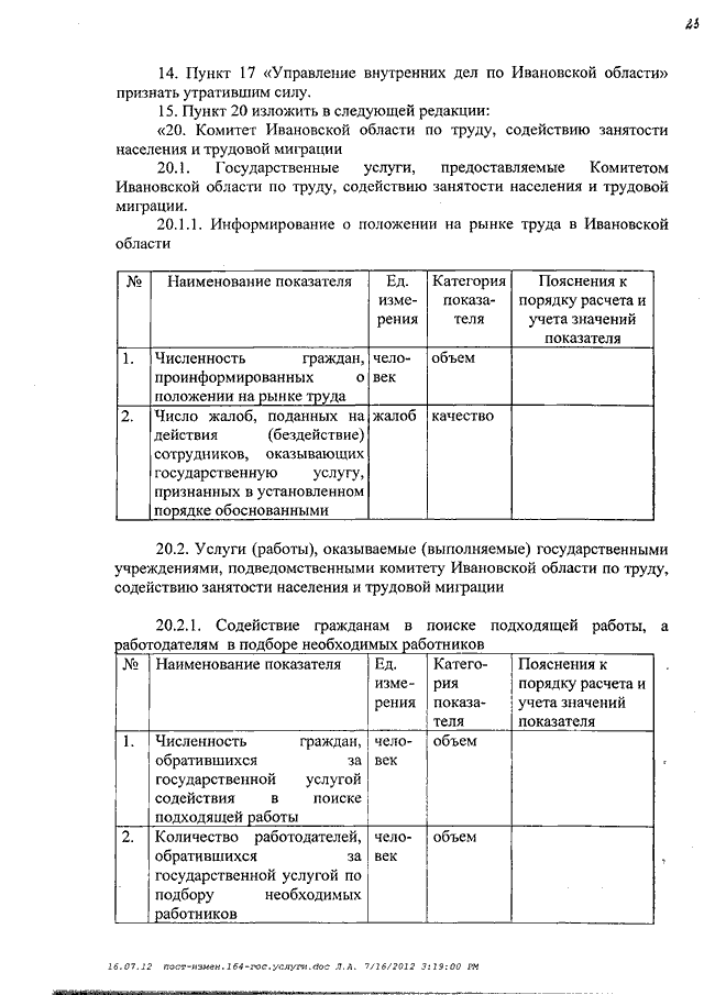 Постановление Правительства Ивановской области от 04.09.2012 N 336-п "О внесении изменений в постановление Правительства Ивановской области от 26.06.2008 N 164-п "Об утверждении перечня показателей, характеризующих оказание (выполнение) государственных услуг (работ) в Ивановской области"