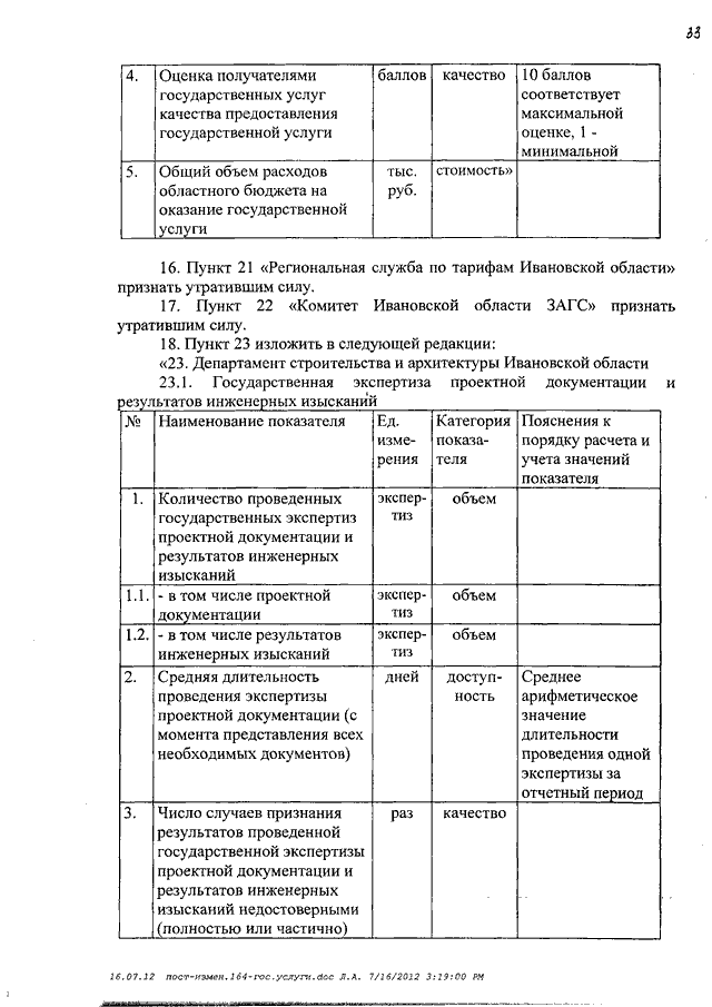 Постановление Правительства Ивановской области от 04.09.2012 N 336-п "О внесении изменений в постановление Правительства Ивановской области от 26.06.2008 N 164-п "Об утверждении перечня показателей, характеризующих оказание (выполнение) государственных услуг (работ) в Ивановской области"