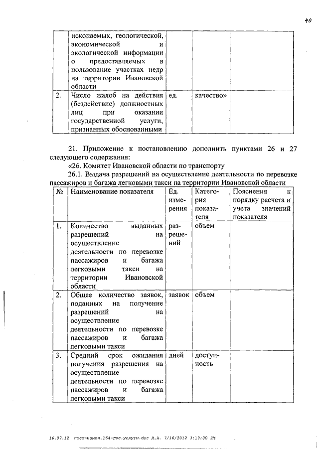Постановление Правительства Ивановской области от 04.09.2012 N 336-п "О внесении изменений в постановление Правительства Ивановской области от 26.06.2008 N 164-п "Об утверждении перечня показателей, характеризующих оказание (выполнение) государственных услуг (работ) в Ивановской области"