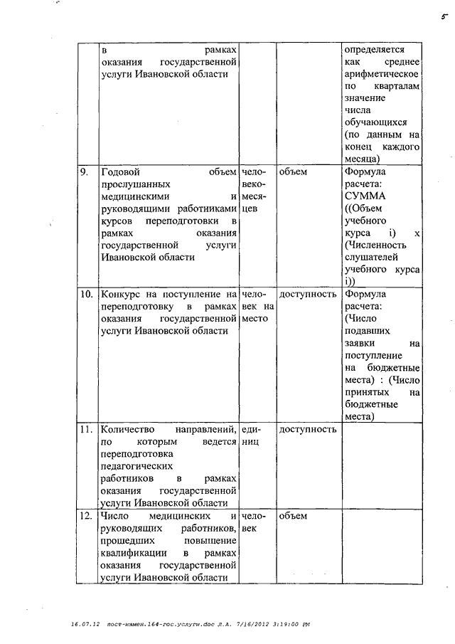 Постановление Правительства Ивановской области от 04.09.2012 N 336-п "О внесении изменений в постановление Правительства Ивановской области от 26.06.2008 N 164-п "Об утверждении перечня показателей, характеризующих оказание (выполнение) государственных услуг (работ) в Ивановской области"