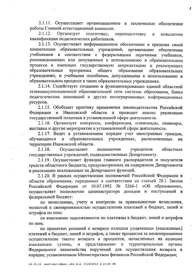 Постановление Правительства Ивановской области от 28.09.2012 N 363-п "Об утверждении Положения о Департаменте образования Ивановской области"