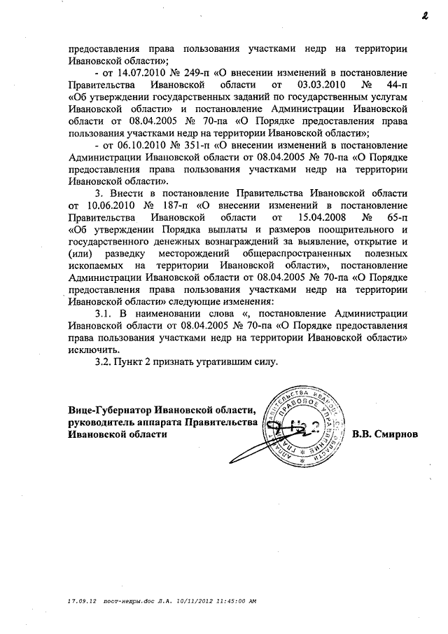 Постановление Правительства Ивановской области от 11.10.2012 N 384-п "О Порядке предоставления права пользования участками недр местного значения на территории Ивановской области"