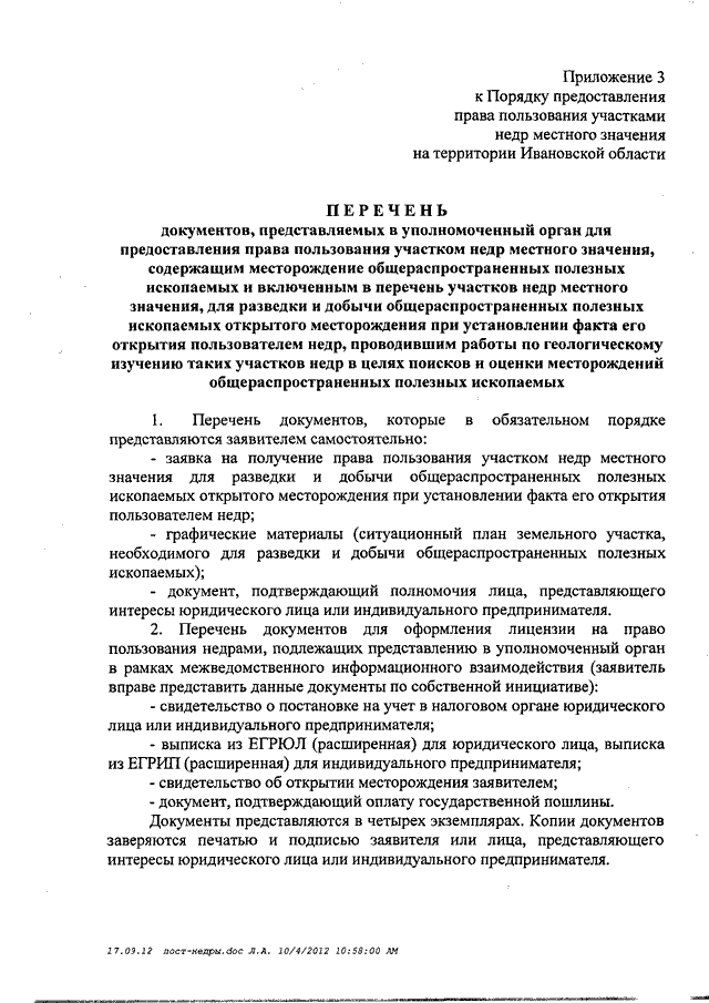 Постановление Правительства Ивановской области от 11.10.2012 N 384-п "О Порядке предоставления права пользования участками недр местного значения на территории Ивановской области"