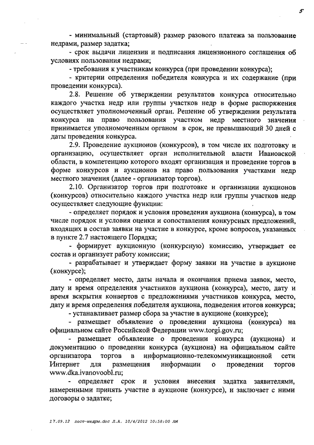 Постановление Правительства Ивановской области от 11.10.2012 N 384-п "О Порядке предоставления права пользования участками недр местного значения на территории Ивановской области"