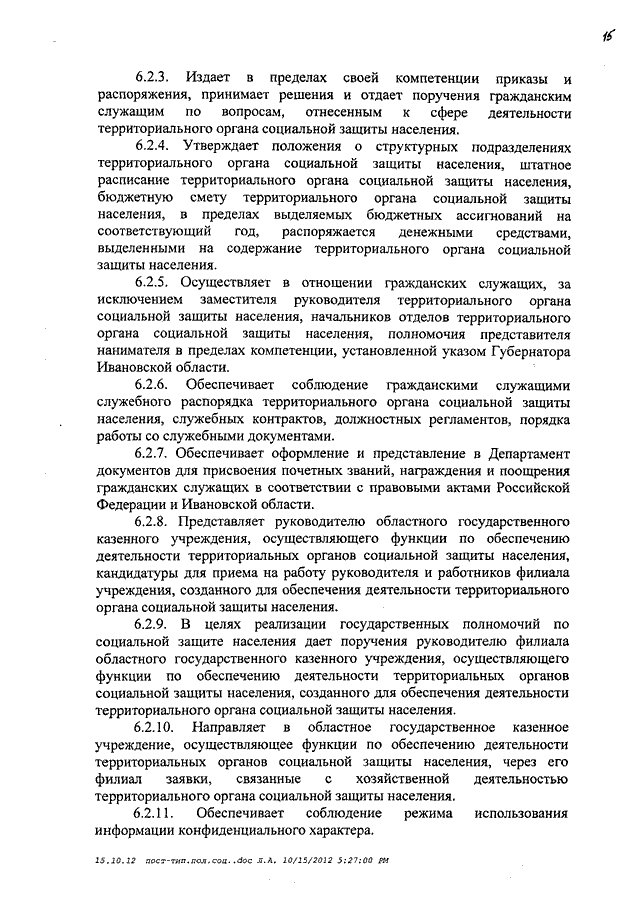 Постановление Правительства Ивановской области от 17.10.2012 N 404-п "Об утверждении Типового положения о территориальном органе Департамента социальной защиты населения Ивановской области"