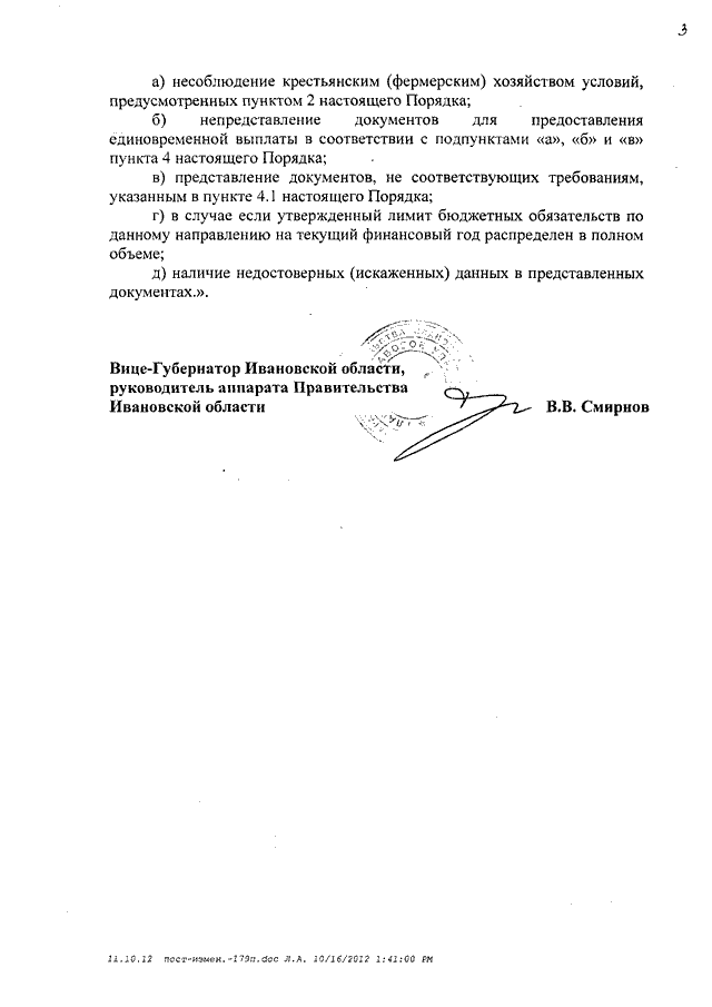Постановление Правительства Ивановской области от 17.10.2012 N 406-п "О внесении изменений в постановление Правительства Ивановской области от 03.11.2006 N 179-п "Об утверждении Порядка осуществления единовременных выплат на переселение в сельскую местность и обустройство глав крестьянских (фермерских) хозяйств и членов их семей"