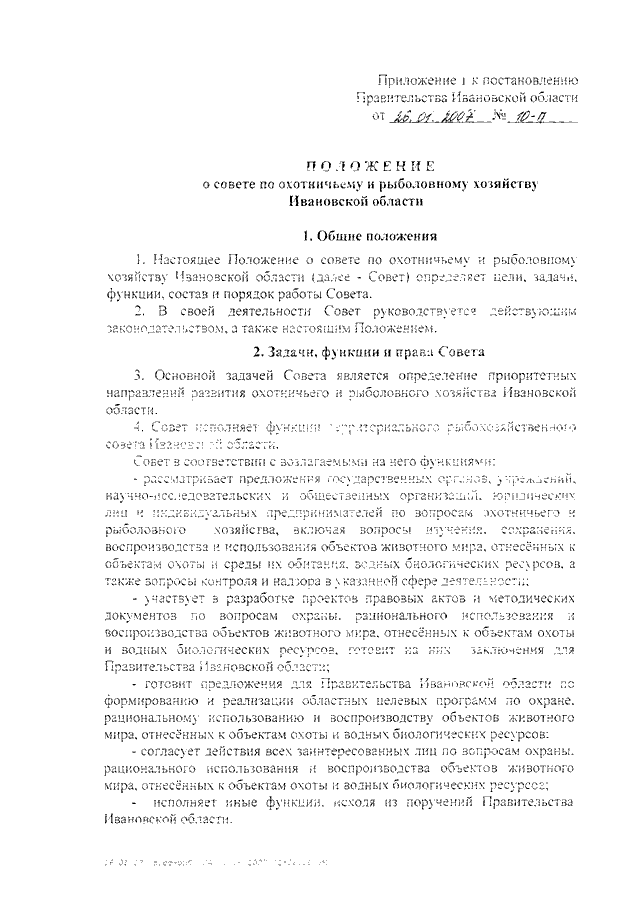 Постановление Правительства Ивановской области от 26.01.2007 N 10-п "О совете по охотничьему и рыболовному хозяйству Ивановской области" (вместе с "Положением о совете по охотничьему и рыболовному хозяйству Ивановской области")