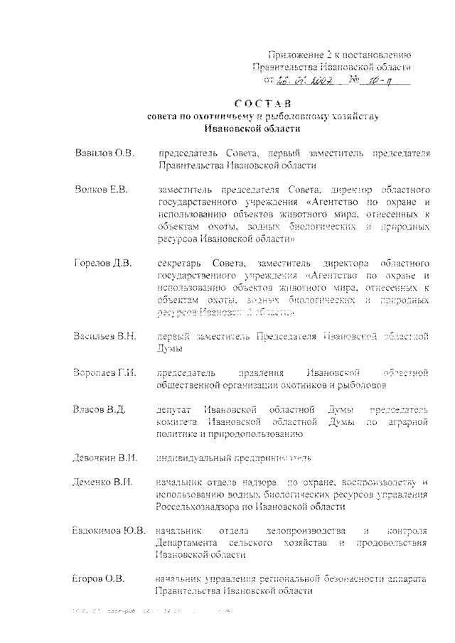Постановление Правительства Ивановской области от 26.01.2007 N 10-п "О совете по охотничьему и рыболовному хозяйству Ивановской области" (вместе с "Положением о совете по охотничьему и рыболовному хозяйству Ивановской области")