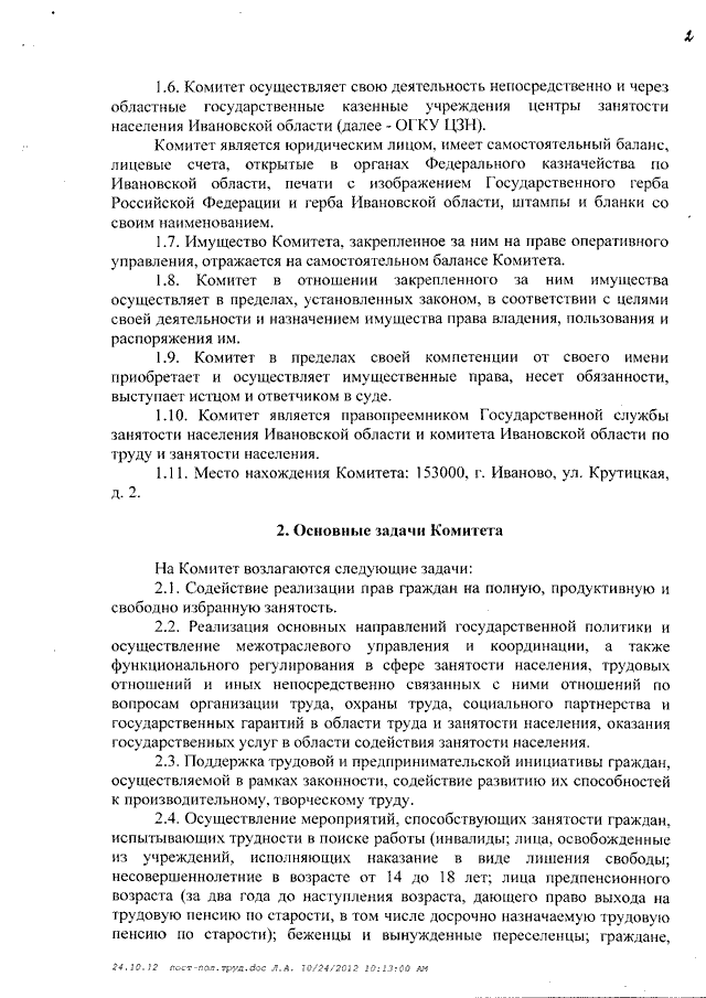 Постановление Правительства Ивановской области от 09.11.2012 N 449-п "Об утверждении Положения о комитете Ивановской области по труду, содействию занятости населения и трудовой миграции"