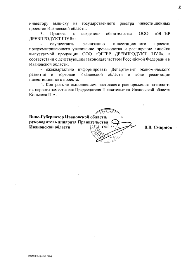 Распоряжение Правительства Ивановской области от 07.11.2012 N 283-рп "Об оказании государственной поддержки ООО "ЭГГЕР ДРЕВПРОДУКТ ШУЯ" на реализацию инвестиционного проекта "Организация производства тонкой необлицованной ДСП (каландровый пресс)"