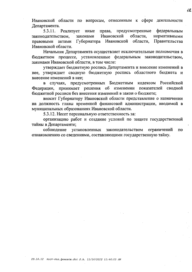 Постановление Правительства Ивановской области от 22.11.2012 N 473-п "Об утверждении Положения о Департаменте финансов Ивановской области"