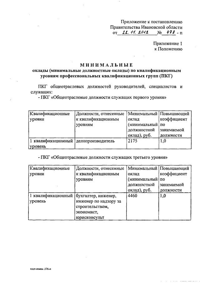 Постановление Правительства Ивановской области от 22.11.2012 N 478-п "О внесении изменений в постановление Правительства Ивановской области от 31.12.2008 N 376-п "О системе оплаты труда работников областного государственного учреждения "Агентство капитального строительства Ивановской области"