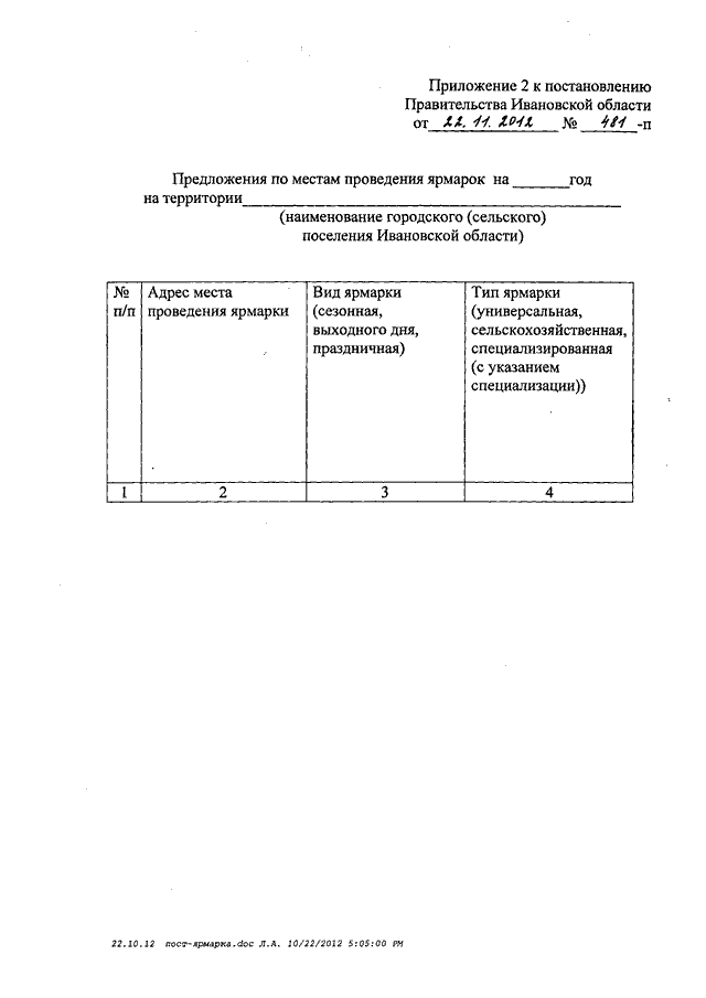 Постановление Правительства Ивановской области от 22.11.2012 N 481-п "Об утверждении Порядка организации ярмарок на территории Ивановской области и продажи товаров (выполнения работ, оказания услуг) на них"