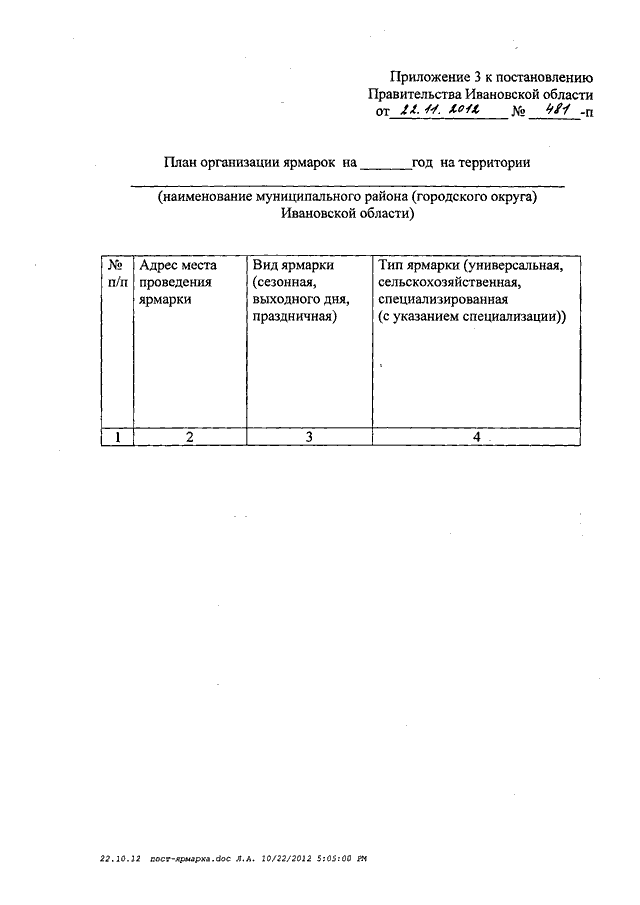Постановление Правительства Ивановской области от 22.11.2012 N 481-п "Об утверждении Порядка организации ярмарок на территории Ивановской области и продажи товаров (выполнения работ, оказания услуг) на них"