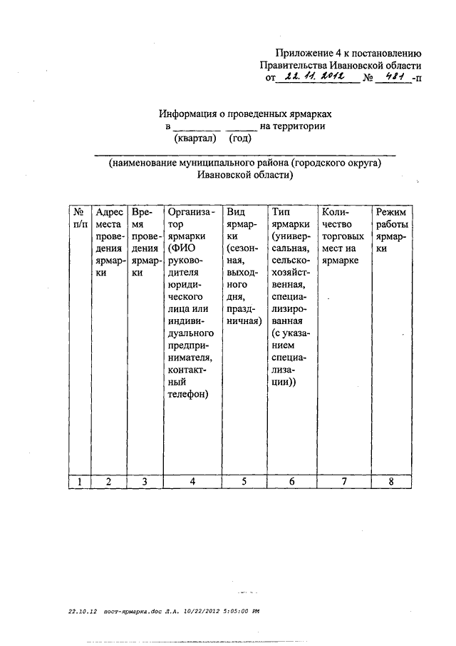 Постановление Правительства Ивановской области от 22.11.2012 N 481-п "Об утверждении Порядка организации ярмарок на территории Ивановской области и продажи товаров (выполнения работ, оказания услуг) на них"