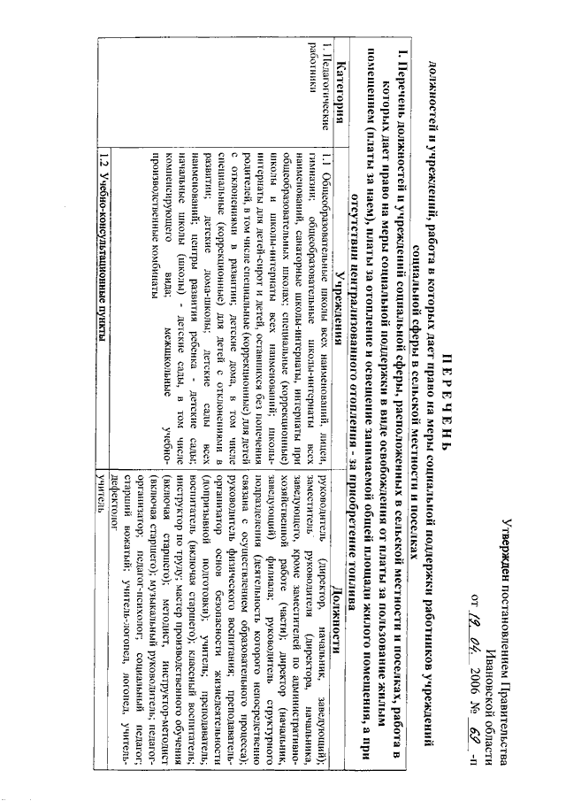 Постановление Правительства Ивановской области от 19.04.2006 N 69-п "Об утверждении Перечня должностей и учреждений, работа в которых дает право на меры социальной поддержки работников учреждений социальной сферы в сельской местности и поселках"