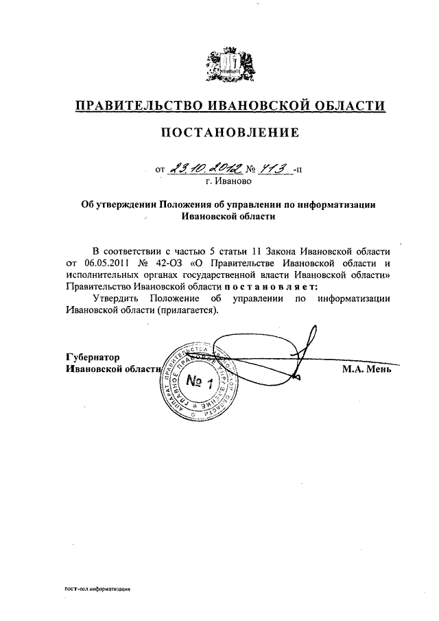 Постановление Правительства Ивановской области от 23.10.2012 N 413-п "Об утверждении Положения об управлении по информатизации Ивановской области"