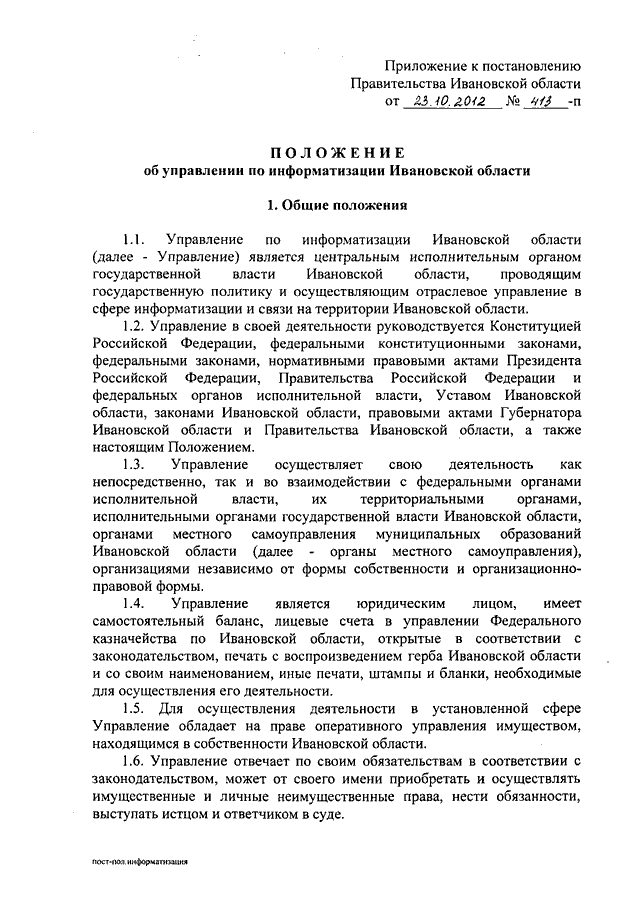 Постановление Правительства Ивановской области от 23.10.2012 N 413-п "Об утверждении Положения об управлении по информатизации Ивановской области"