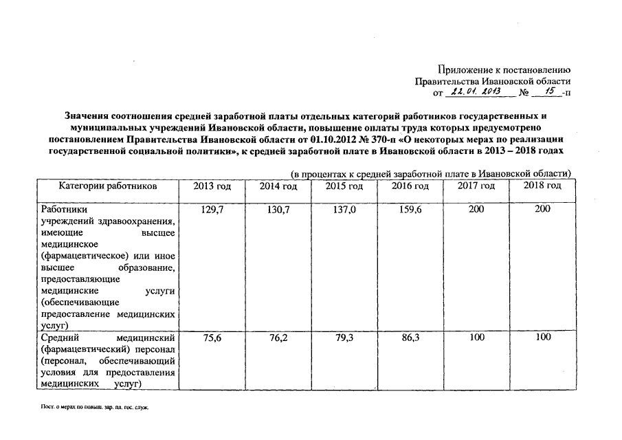 Постановление Правительства Ивановской области от 22.01.2013 N 15-п "Об отдельных мерах по поэтапному повышению средней заработной платы отдельных категорий работников государственных и муниципальных учреждений Ивановской области"