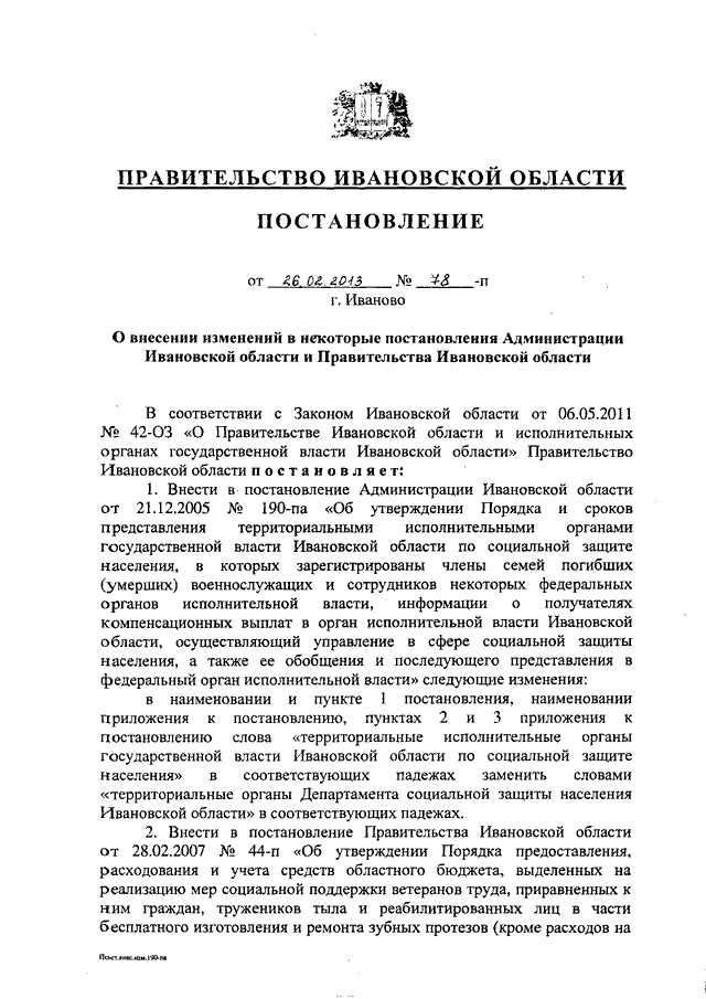 Постановление Правительства Ивановской области от 26.02.2013 N 78-п "О внесении изменений в некоторые постановления Администрации Ивановской области и Правительства Ивановской области"