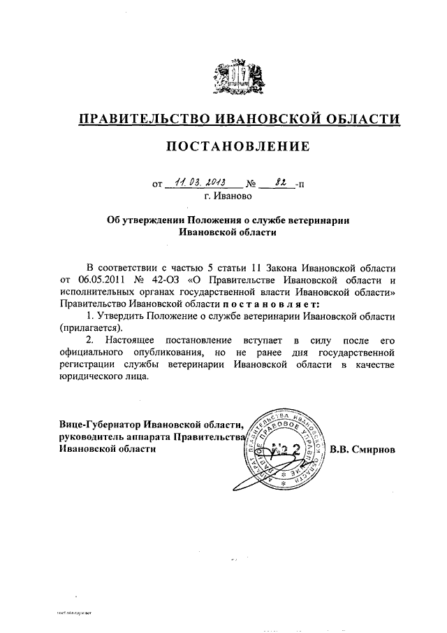 Постановление Правительства Ивановской области от 11.03.2013 N 82-п "Об утверждении Положения о службе ветеринарии Ивановской области"