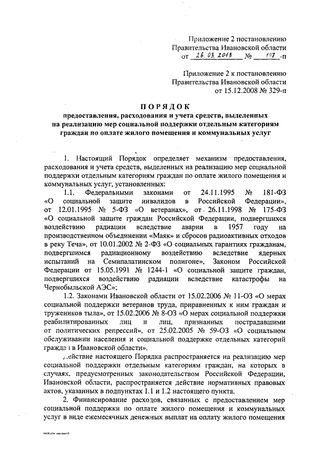 Постановление Правительства Ивановской области от 26.03.2013 N 107-п "О внесении изменений в некоторые постановления Правительства Ивановской области" (вместе с "Порядком предоставления, расходования и учета средств, поступающих из областного бюджета на выплату ежемесячного пособия на ребенка, ежемесячных денежных выплат ветеранам труда, приравненным к ним гражданам, труженикам тыла, реабилитированным лицам и лицам, признанным пострадавшими от политических репрессий", "Порядком предоставления, расходования и учета средств, выделенных на реализацию мер социальной поддержки отдельным категориям граждан по оплате жилого помещения и коммунальных услуг")